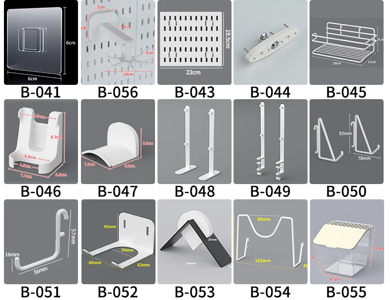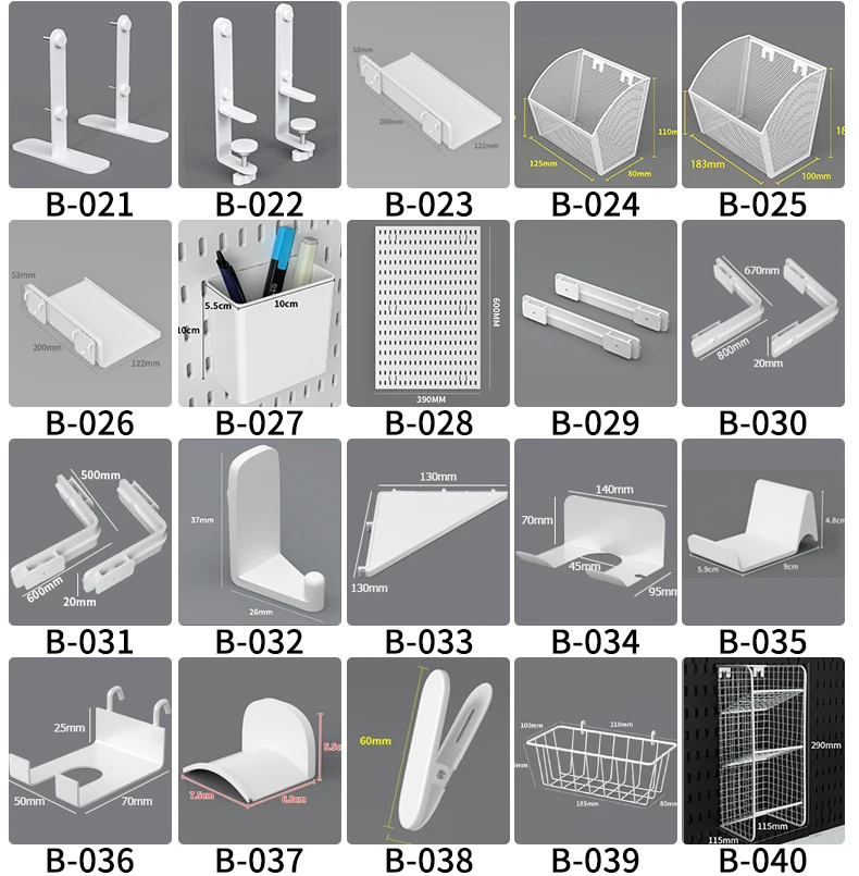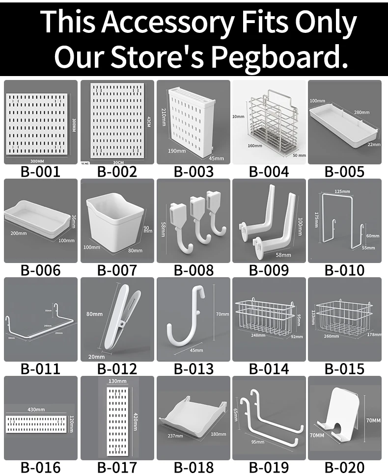 Os acessórios aqui cabem apenas no pegboard neste link.