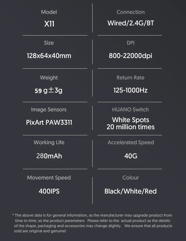 O modelo de Sensor de: Pixart 3311 (12000 DPI | 300 IPS | 35G)